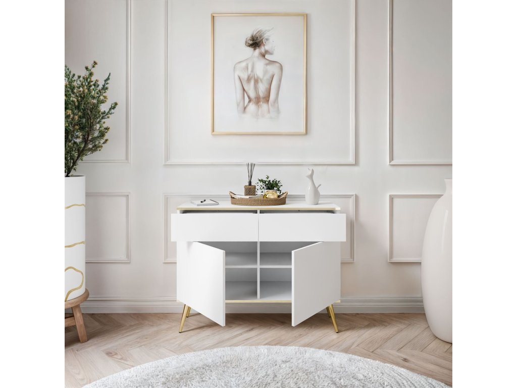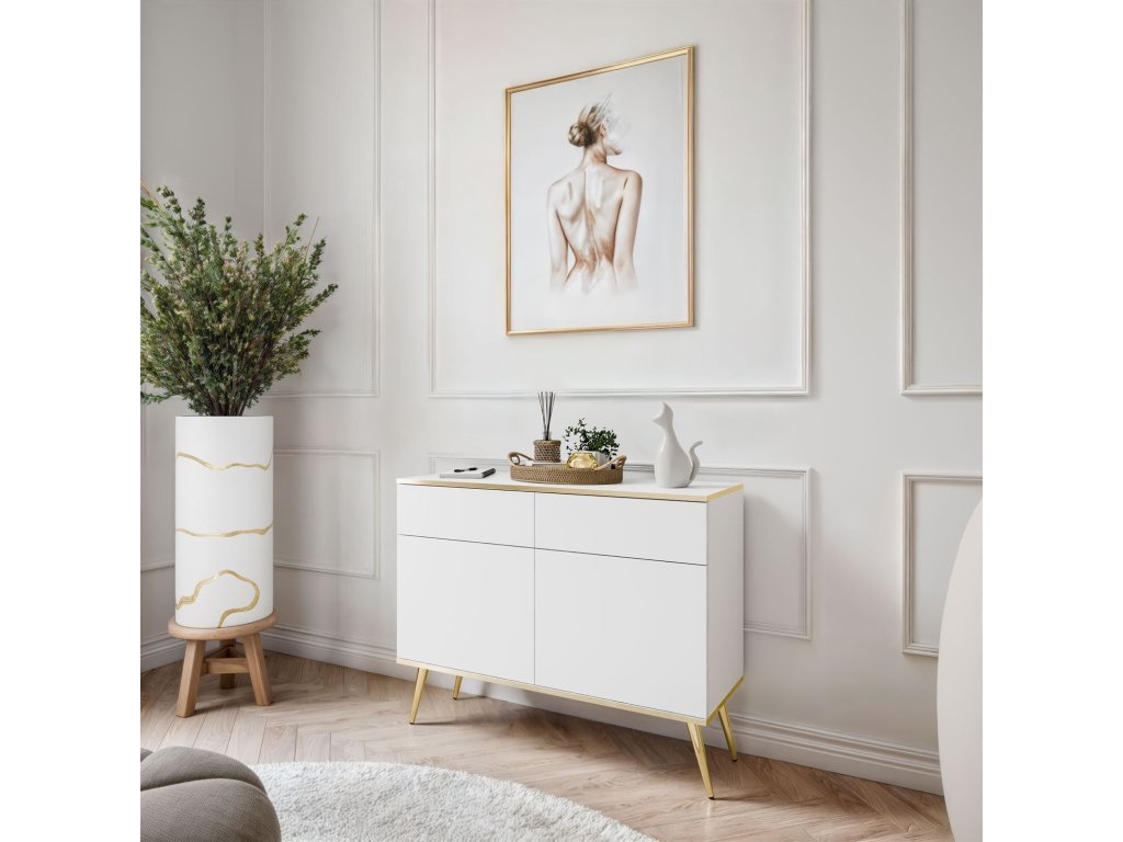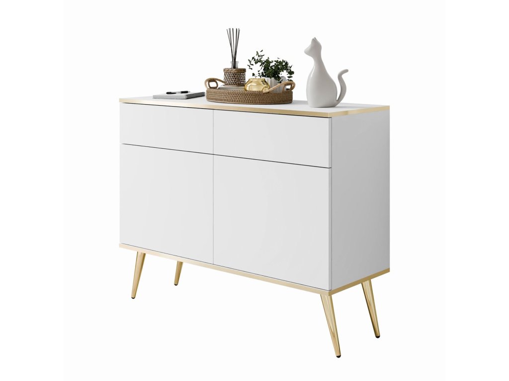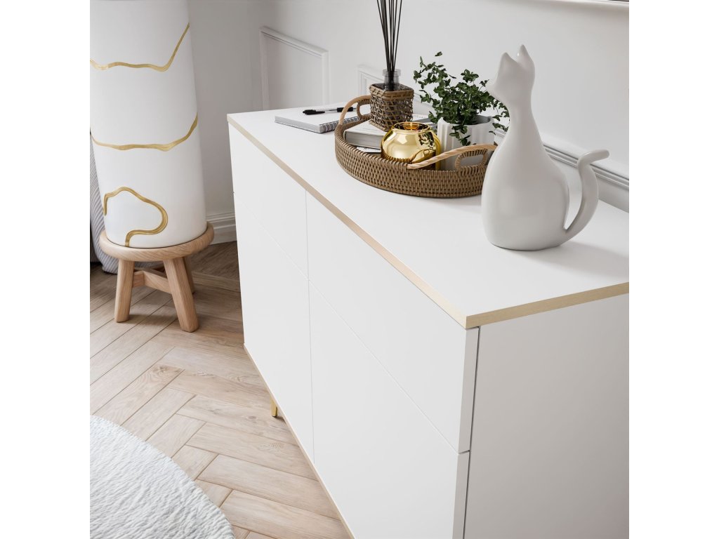 Komoda BOSTON je elegantnou a funkčnou voľbou do obývačky, spálne a chodby. Jeho moderný dizajn kombinuje jednoduché čelá s jemnými zlatými detailmi, čo dodáva nábytku jedinečný charakter. Priestranný interiér ponúka praktický úložný priestor a systém otvárania push-to-open zaisťuje jednoduché používanie.