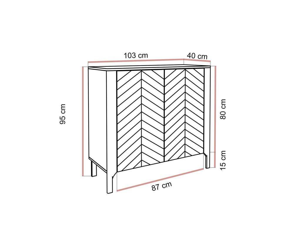 - Čelá vyrobené z laminovanej nábytkovej dosky s hrúbkou 16 mm s ozdobným vzorom rybej kosti.