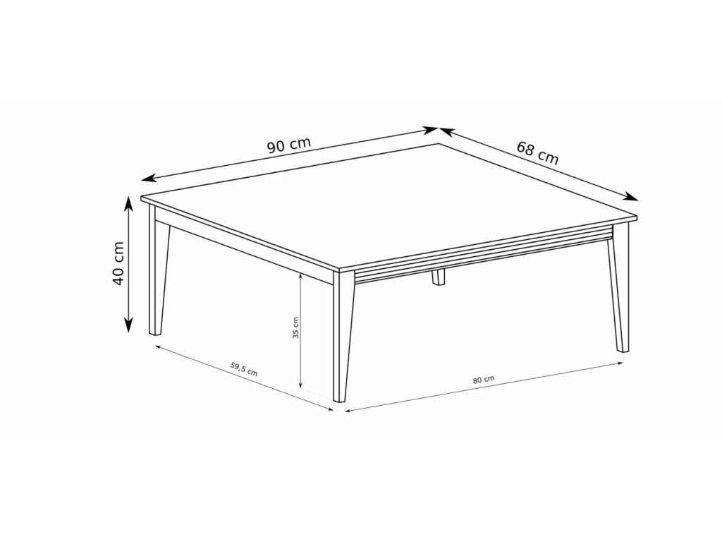 Vďaka kompaktným rozmerom (V 90 / Š 68 / V 42 cm) je stolík funkčný, nezahlcuje priestor a skvele poslúži v obývačke ako konferenčný alebo odkladací stolík.