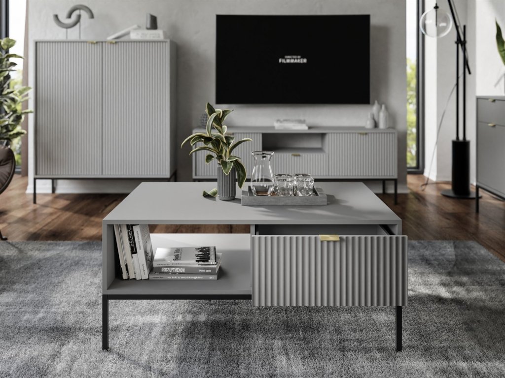Kovový podstavec dodáva konštrukcii ľahkosť a celok dopĺňajú ozdobné zlaté úchytky.