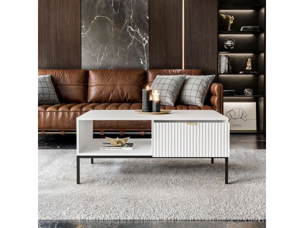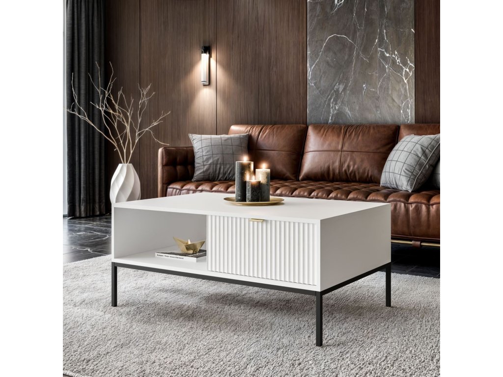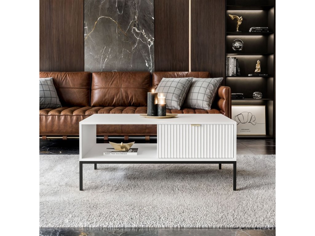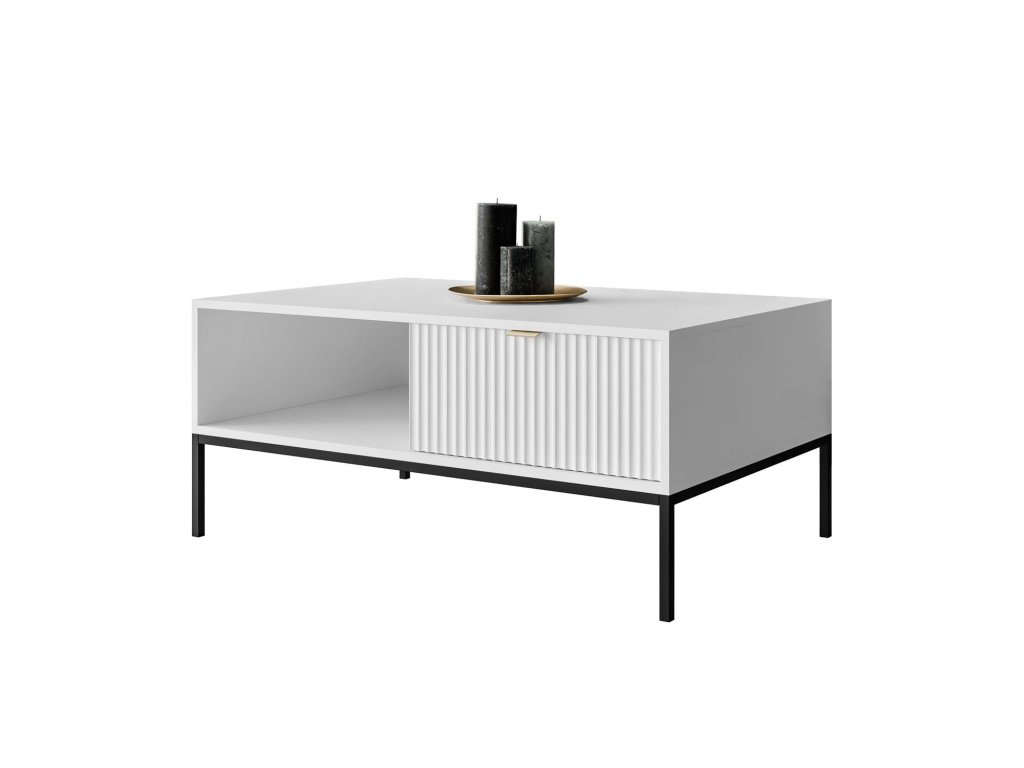 Štýlový konferenčný stolík CORA so šuflíkom v odtieni biela matná
