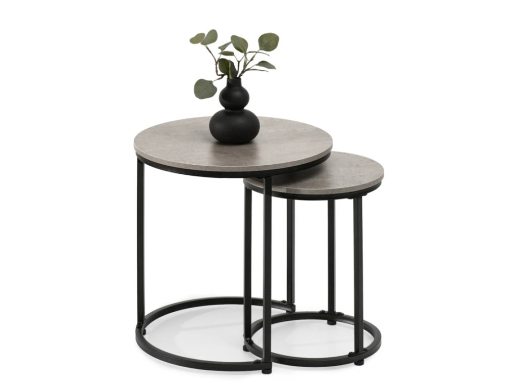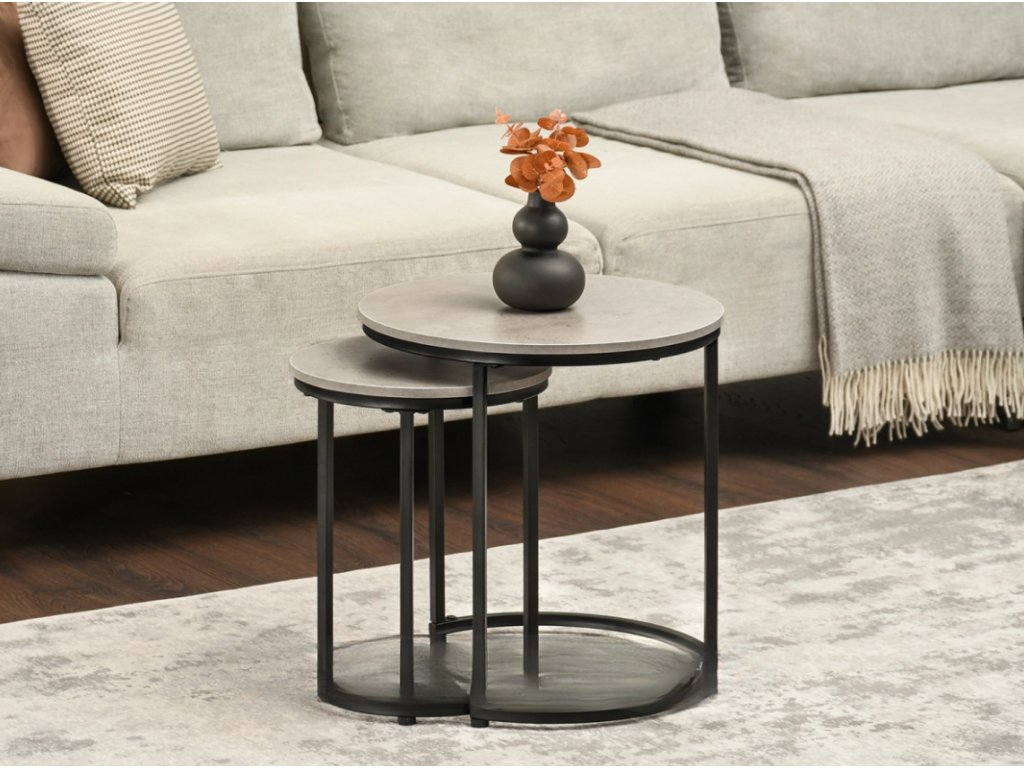 Objavte jedinečnú sadu konferenčných stolíkov DUNCAN MINI s betónovou povrchovou úpravou a čiernymi podnožami – dokonalú zmes modernity a surového industriálneho charakteru. Táto sada okrúhlych konferenčných stolíkov 2 v 1 je perfektnou voľbou pre tých, ktorí si cenia štýlové a zároveň praktické riešenia pre svoju obývačku, spálňu alebo hotelovú halu. Vytvorte si útulnú atmosféru a cíťte sa výnimočne s kusom nábytku, ktorý kombinuje funkčnosť s prvotriednou estetikou.