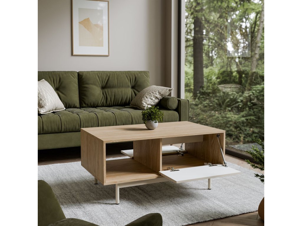 Vďaka výklenku na poličky je stolík QUENTIN ideálny na uloženie vašich obľúbených kníh, časopisov alebo dekorácií. Dve praktické klapky, ktoré sa otvárajú z oboch strán, umožňujú pohodlný prístup k priestranným úložným priestorom – ideálnym na uloženie diaľkových ovládačov, spoločenských hier alebo drobného príslušenstva.