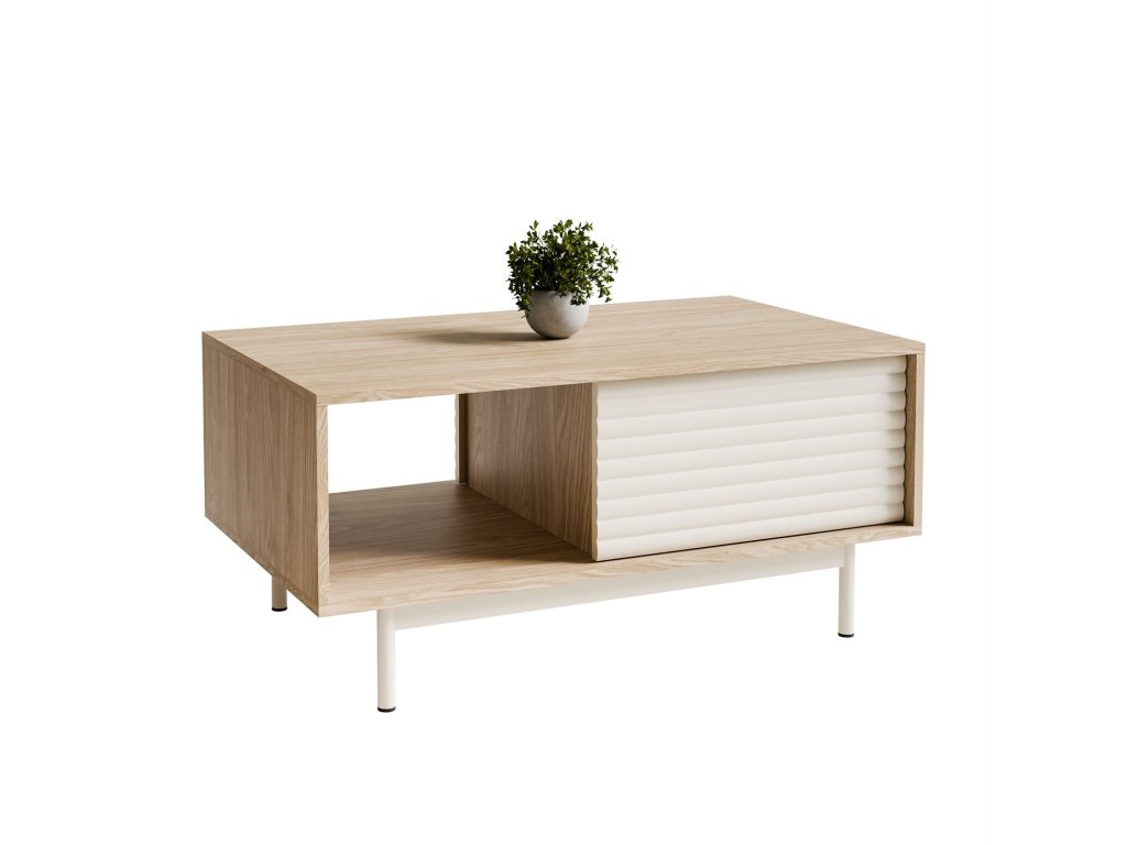 Konferenčný stolík QUENTIN je perfektnou voľbou pre tých, ktorí si cenia elegantný dizajn v kombinácii s praktickými riešeniami. Rám je vyrobený z odolnej laminovanej dosky , ktorá zaisťuje odolnosť voči každodennému používaniu a jednoduché čistenie. Predné časti z MDF sú doplnené štýlovými drážkovanými vložkami , ktoré dodávajú celému kusu jedinečný charakter a zdôrazňujú luxusný vzhľad nábytku.