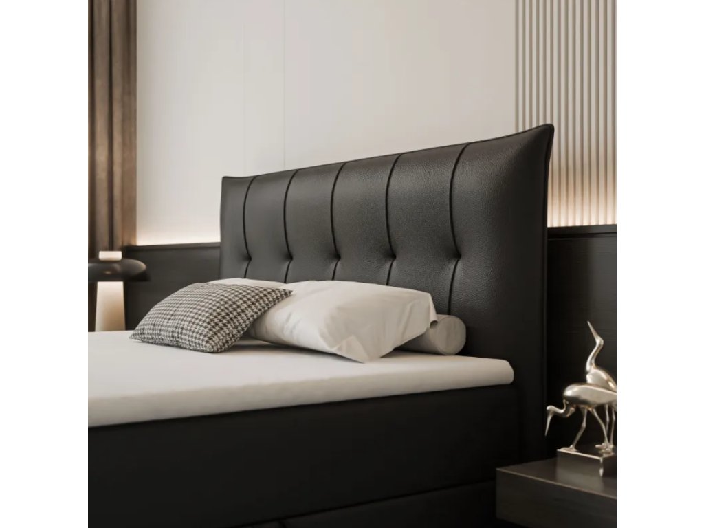 Vysoké, prešívané čelo postele s precízne čalúneným povrchom nielenže zaujme svojím elegantným vzhľadom, ale poskytuje aj výnimočné pohodlie pri čítaní knihy alebo večernom relaxe. Pevná kontinentálna konštrukcia , podopretá starostlivo vybranými vrstvami matraca, zaručuje vynikajúcu oporu tela a zabezpečuje zdravý a regeneračný spánok každú noc.