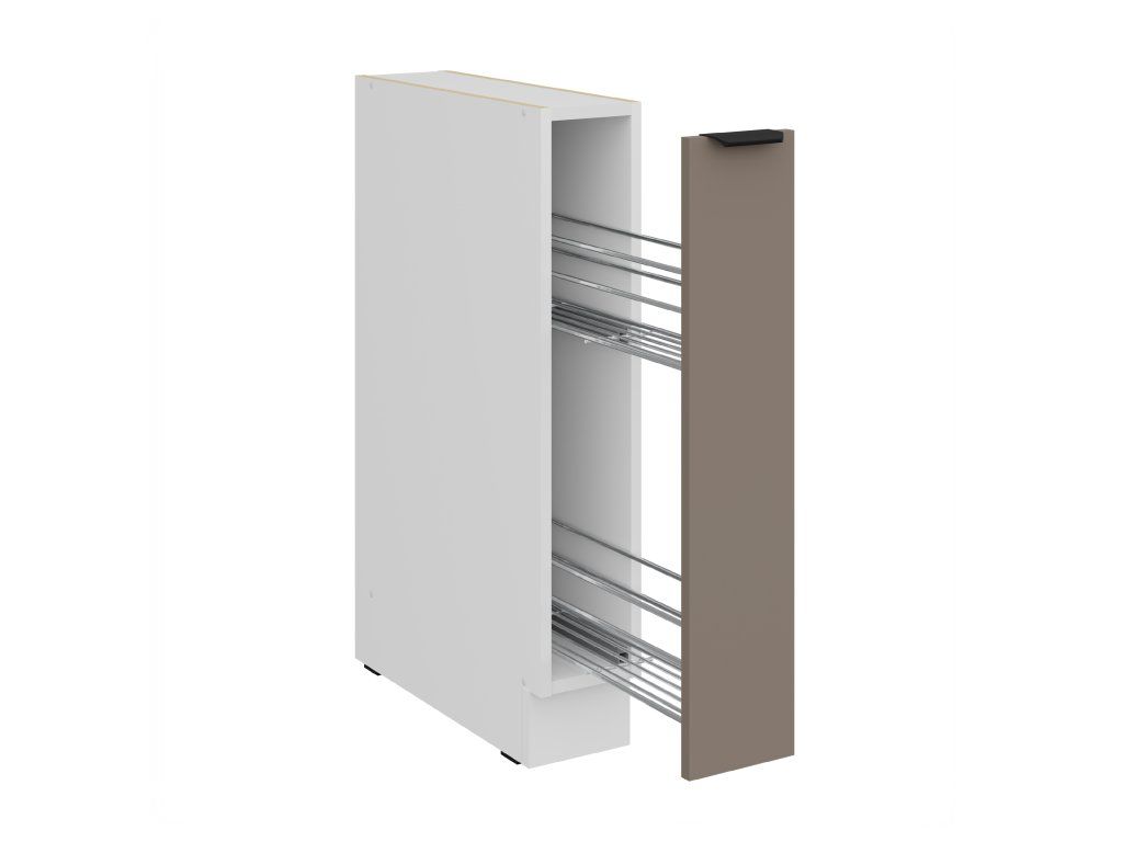 Hľadáte spôsob, ako elegantne vyplniť aj ten najmenší priestor vo vašej kuchyni? Úzka spodná skrinka KAYRA v jemnom odtieni Sandgrau (pieskovo šedá) je dokonalým spojením minimalistického dizajnu a maximálnej praktickosti. Sírka 15 cm je ideálna na uskladnenie fliaš, olejov či korenín, pričom vnáša do interiéru moderný nádych.