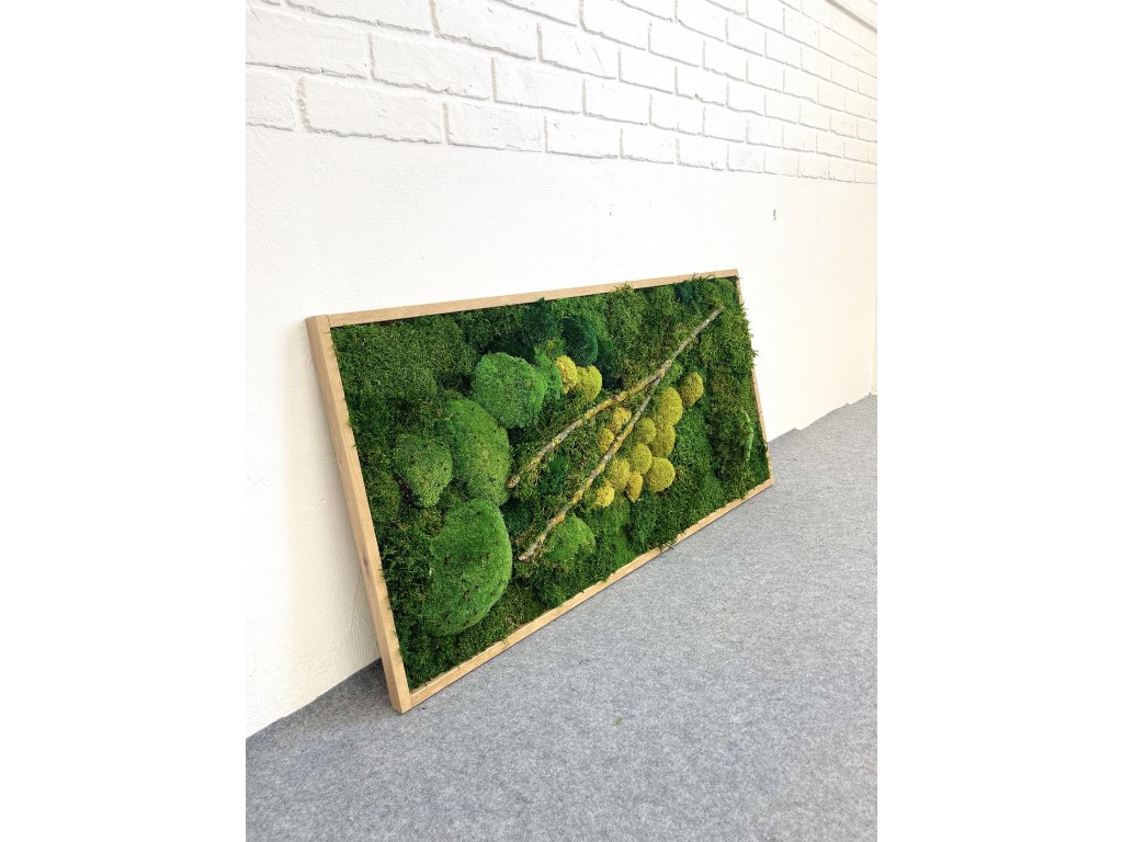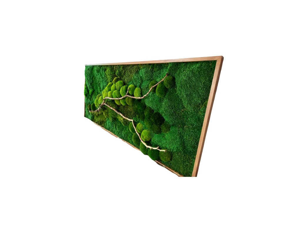 Cíťte sa doma alebo v kancelárii ako v prírode v spoločnosti nášho machového obrazu. Je vytvorený z kombinácie plochého a kopčekového machu a kôry zo stromu, šišiek . Svojou štruktúrou sa stane zaručeným pútačom pohľadov v každej miestnosti.
