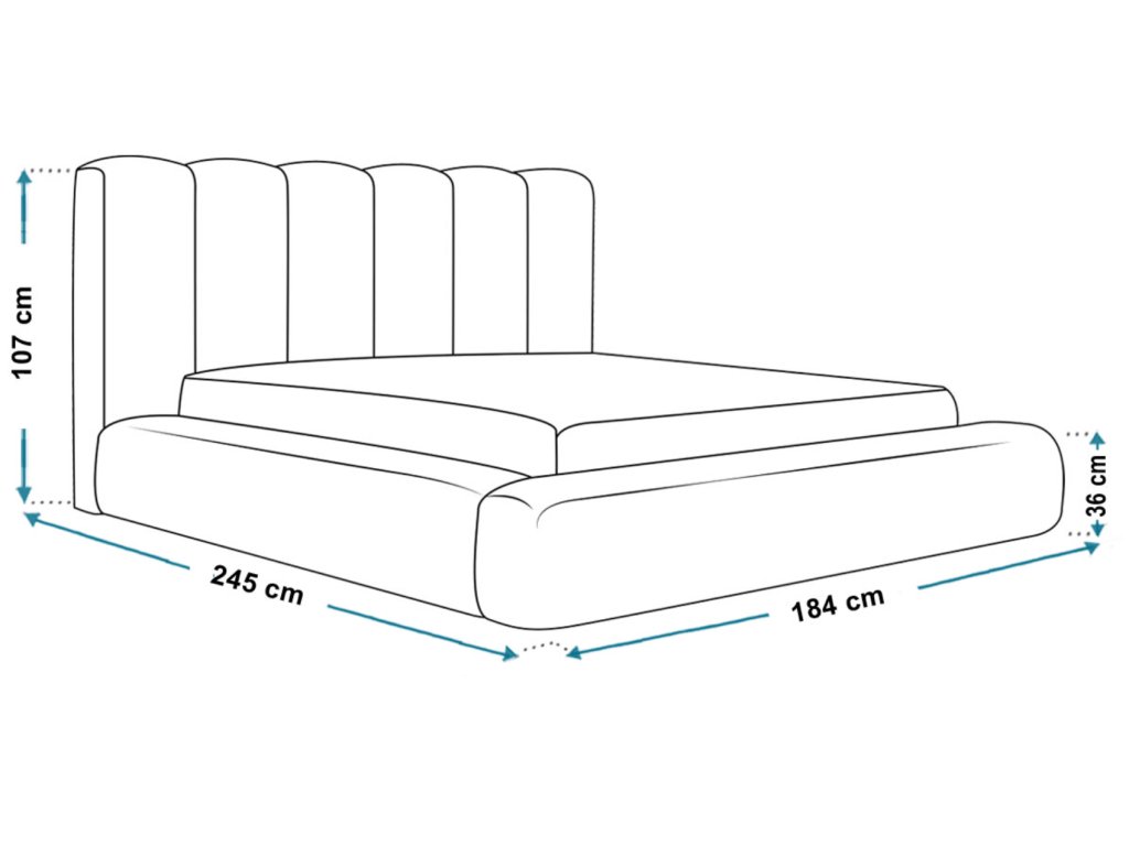 Exkluzívny široký rám: Vonkajšie rozmery postele (224x 245 cm) vytvárajú efekt „ostrova pohodlia“. Masívne čalúnené bočnice pôsobia mäkko, bezpečne a dodávajú spálni nádych talianskeho dizajnu.