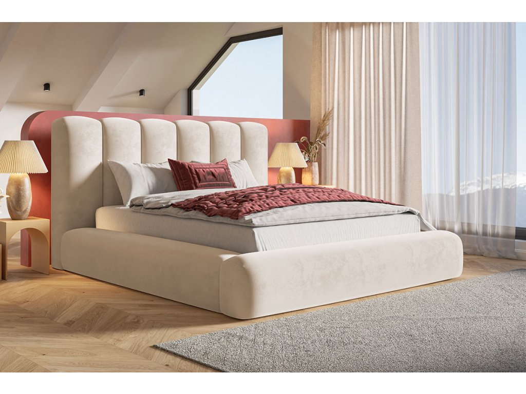 Mäkké čalúnenie: Celá posteľ je potiahnutá príjemnou látkou podľa vášho výberu – žiadne tvrdé rohy a hrany, len maximálne pohodlie.