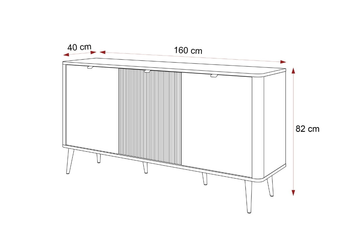 NICOLA ponúka priestranné uloženie bez vizuálneho chaosu. Police za dvierkami udržia poriadok v riade, textíliách aj dokumentoch. Drážkované čelá dodajú stene hĺbku a kovové nohy uľahčia upratovanie i prúdenie svetla pod nábytkom.