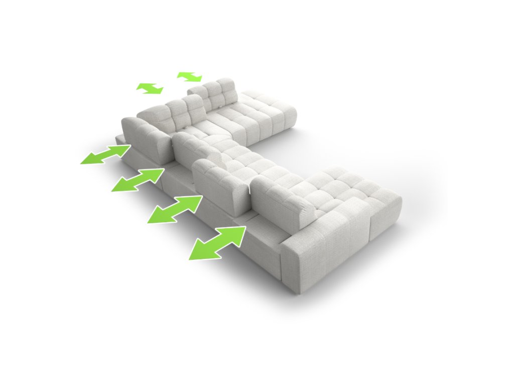 Tvar do U poskytuje dostatok miesta pre celú rodinu alebo návštevy – ideálne na spoločenské stretnutia či relax.