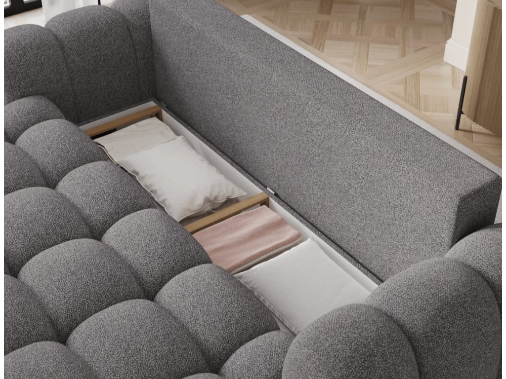 Vďaka mechanizmu Delfin je rozkladanie pohovky rýchle a intuitívne a priestranná priehradka na posteľ