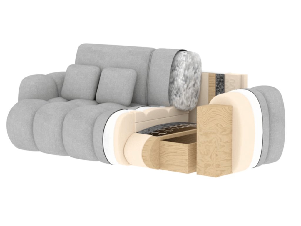 Sedák je vyplnený vlnovou pružinou typu B a penou HR3030 a T2315, ktorá poskytuje vynikajúcu oporu a pohodlie pri sedení aj