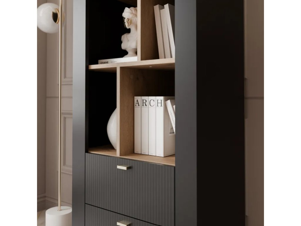 Knižnica BOXTON so zásuvkami je praktický a moderný kus nábytku, ktorý kombinuje funkciu otvorenej knižnice s praktickým úložným priestorom v zásuvkách.