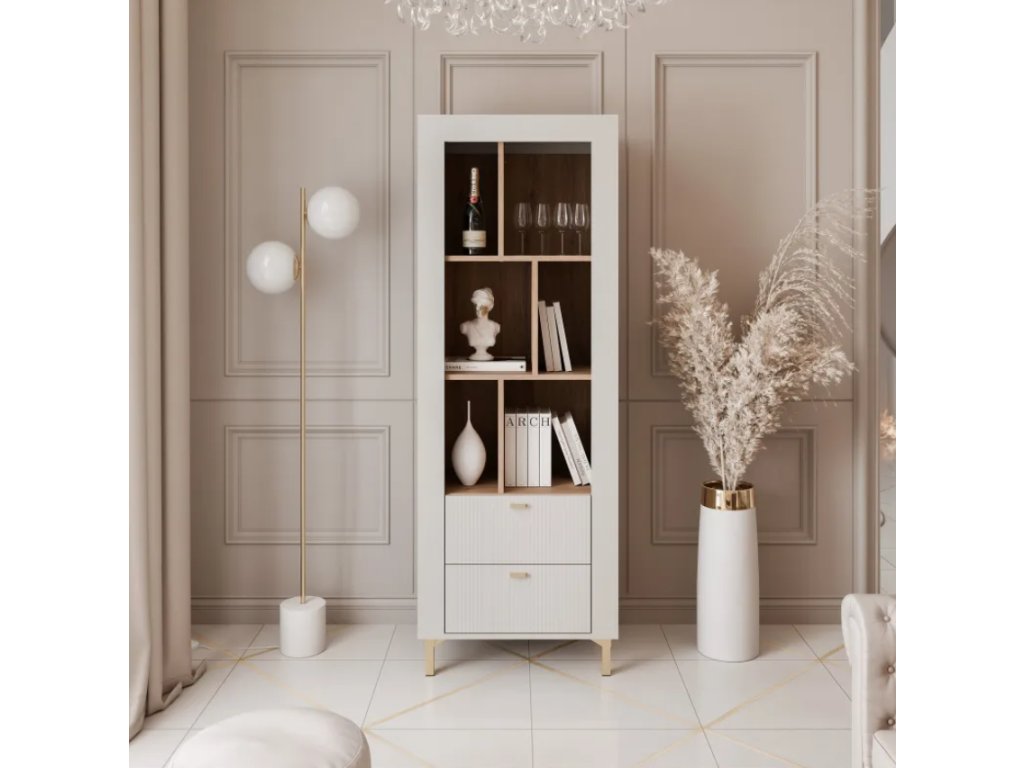 Knižnica BOXTON so zásuvkami je praktický a moderný kus nábytku, ktorý kombinuje funkciu otvorenej knižnice s praktickým úložným priestorom v zásuvkách.