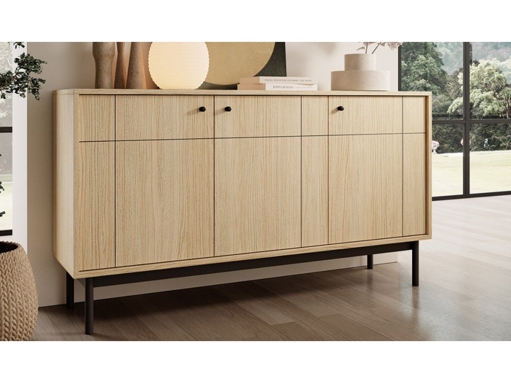 Komoda Brielle v dekore dub spája prírodný vzhľad s modernou funkčnosťou. Vďaka svojmu dizajnu sa hodí do viacerých typov interiérov – od vidieckeho cez škandinávsky až po moderný. Je ideálnym riešením do obývačky, spálne, jedálne alebo predsiene.