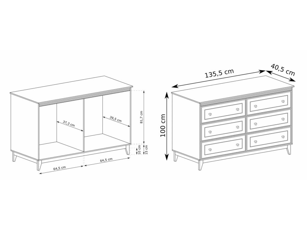 Komoda DANNA je štýlový a funkčný kus nábytku, ktorý kombinuje moderný dizajn s elegantným povrchom a ponúka dostatok úložného priestoru v obývačke, spálni alebo na chodbe.