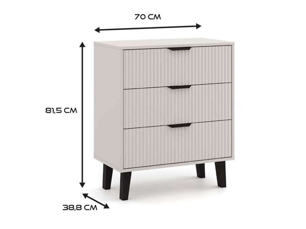 Vďaka trom priestranným zásuvkám si môžete ľahko uložiť oblečenie, doplnky, dokumenty a ďalšie drobnosti, čím si zachováte poriadok a estetiku vo svojej spálni, chodbe, obývačke alebo detskej izbe. Tento kompaktný, no zároveň priestranný kus nábytku sa hodí do menších aj väčších priestorov.