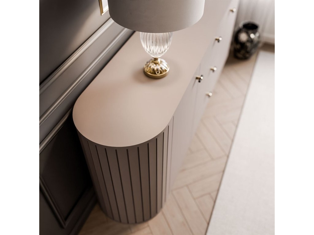 Ich jedinečné tvary, založené na mäkkých, valcovitých formách, dokonale zapadajú do súčasných trendov a zároveň evokujú spomienky na klasický dizajn z minulých desaťročí. Navyše, jemné drážkované povrchové úpravy na predných častiach nábytku im dodávajú elegantnú textúru, ktorá do každej miestnosti vnáša jedinečnú atmosféru – modernú aj nostalgickú.