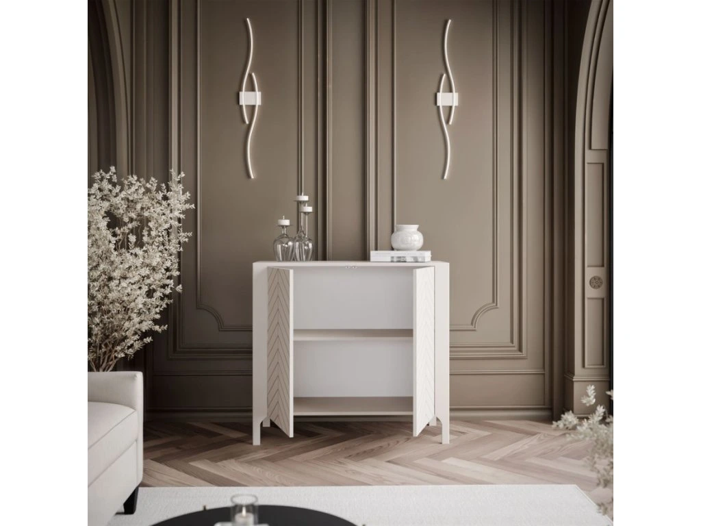 Jej elegantné predné strany so vzorom rybej kosti a mechanizmus tlmeného zatvárania jej dodávajú jedinečný charakter, vďaka čomu je štýlovým a funkčným doplnkom každého interiéru.
