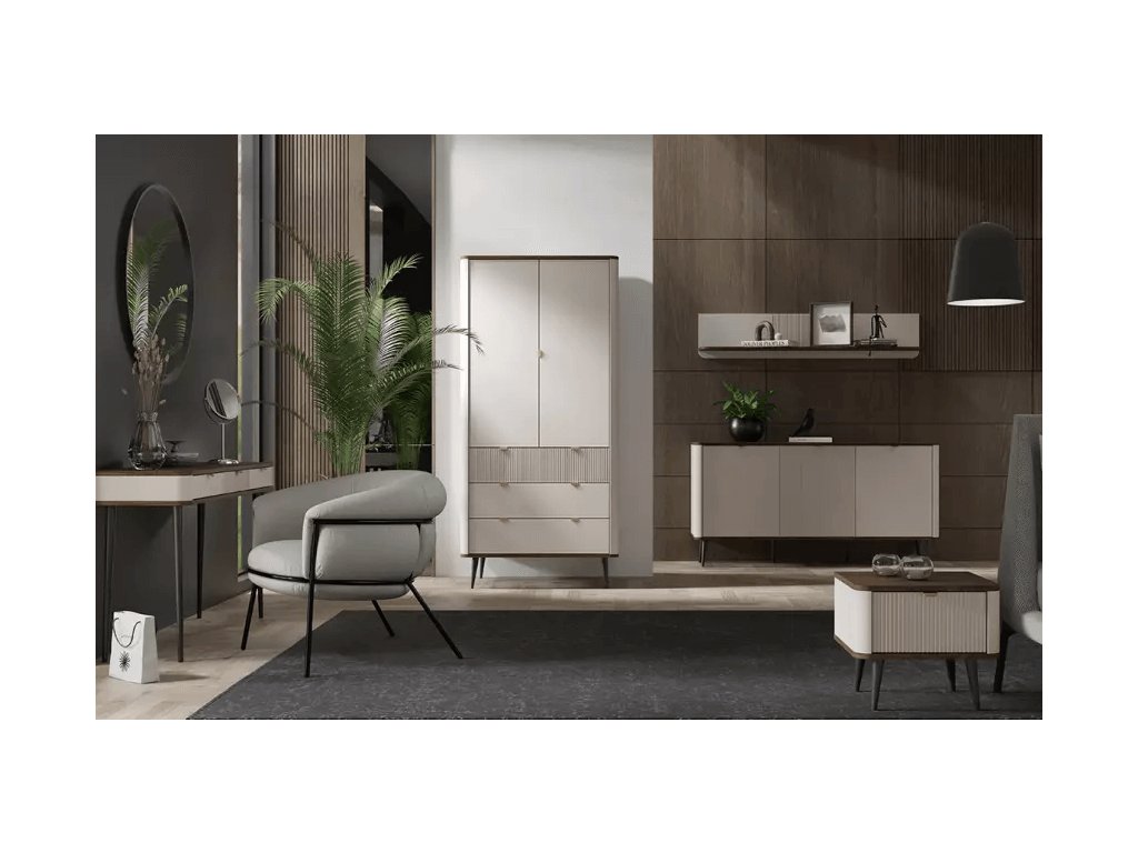 Uzavretá polica z kolekcie NICOLE je kombináciou elegantného dizajnu a premyslenej funkčnosti – ideálnej voľby pre ľudí, ktorí si cenia štýlový poriadok vo svojom domácom priestore. Vybavená tromi priestrannými zásuvkami a praktickou skrinkou s dvierkami a poličkou vo vnútri ponúka vynikajúcu organizáciu malých aj väčších predmetov.