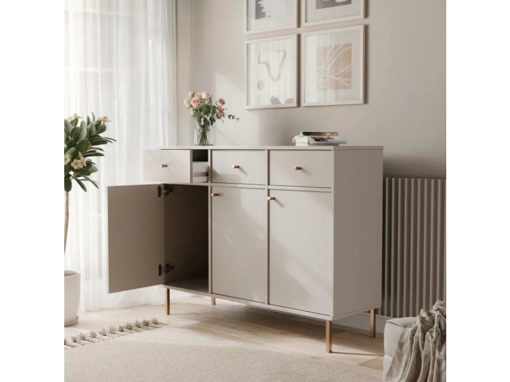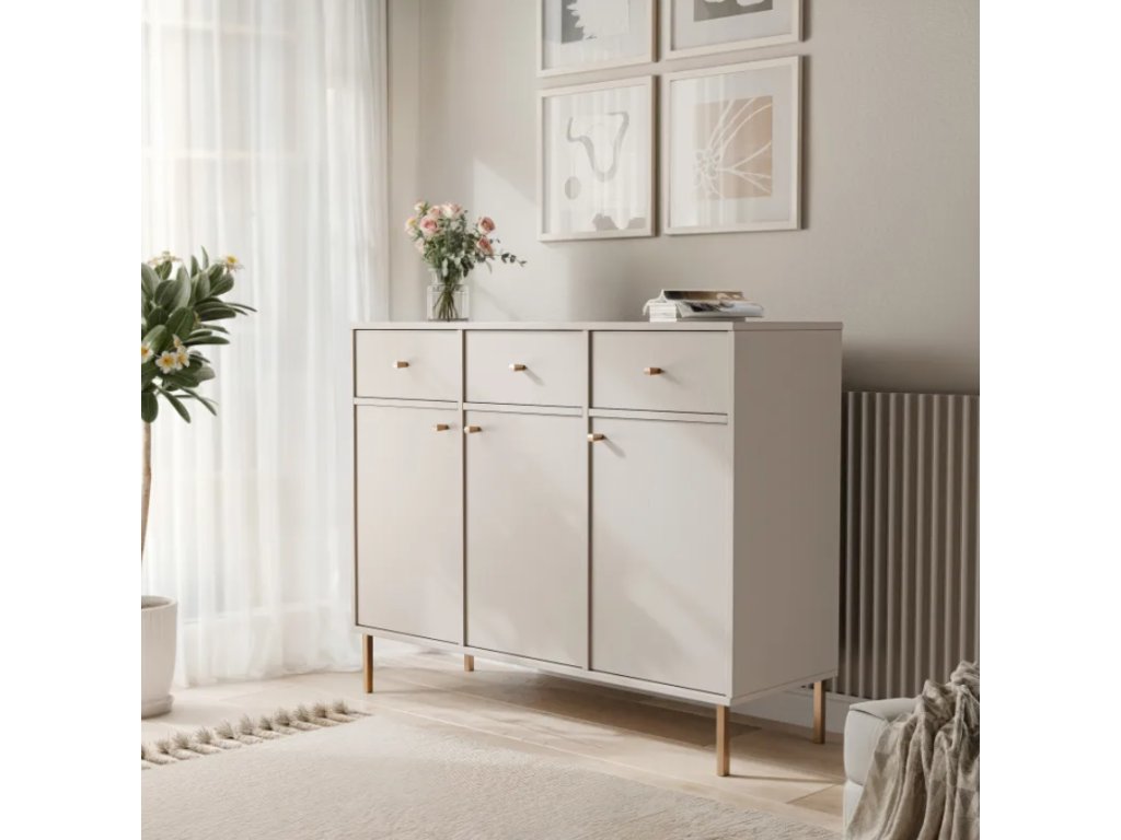 Komoda RAY so zásuvkami 125 cm je štýlový a praktický kus nábytku určený do moderných interiérov, kde je prvoradá estetika aj pohodlie. Jej jednoduchý, nadčasový dizajn a precízne spracovanie z vysoko kvalitných materiálov z nej robia perfektný doplnok do každej obývačky, spálne, jedálne alebo kancelárie.
