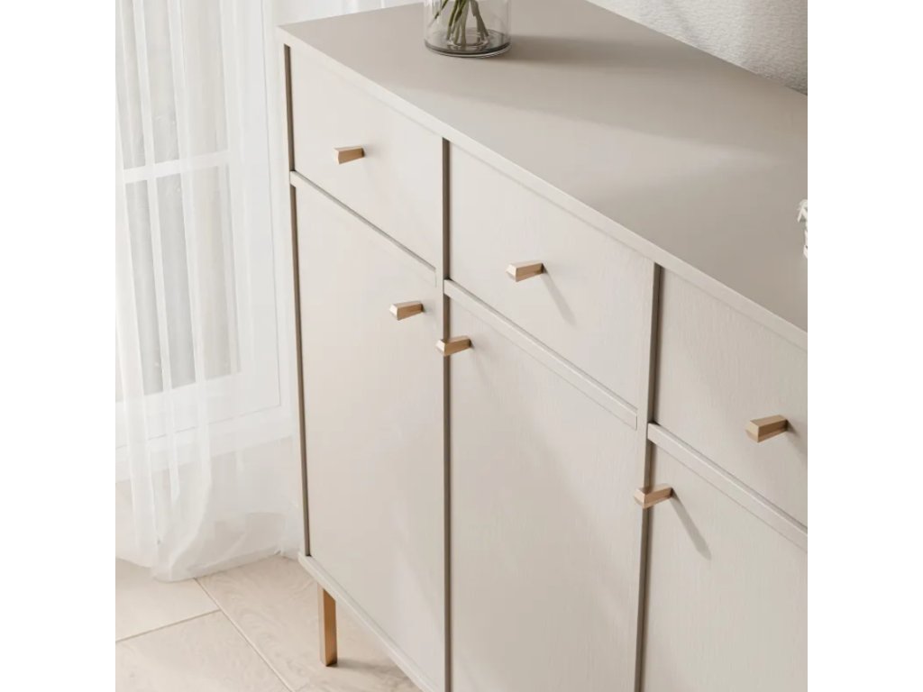 Komoda RAY má tri priestranné priehradky a zásuvky , ktoré poskytujú dostatok miesta na uloženie oblečenia, dokumentov, doplnkov a ďalších domácich potrieb. Otvory pre úchytky sú zvnútra skryté , čo zdôrazňuje dôraz na detail a čistý, moderný vzhľad nábytku.
