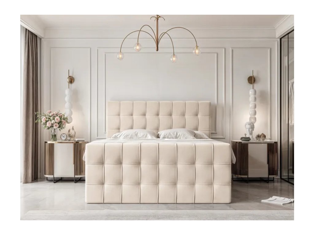 Jeho jedinečný dizajn púta pozornosť ozdobným prešívaním a prešívaním, čo mu dodáva elegantný a luxusný vzhľad. Viete si predstaviť lepšie miesto na relax ako priestrannú, mäkkú a štýlovú posteľ, ktorá sa stane ústredným bodom vašej spálne?