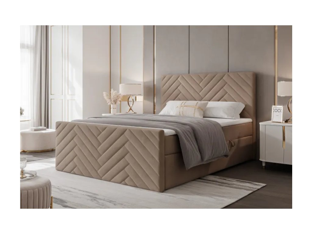 Jeho výrazné, vysoké čelo postele s ozdobným prešívaním púta pozornosť a dodáva prestížny nádych každému interiéru, pričom dokonale dopĺňa očarujúce aj moderné interiéry. Ozdobné prešívanie zdobí aj prednú časť postele a vytvára tak ucelený a elegantný celok.
