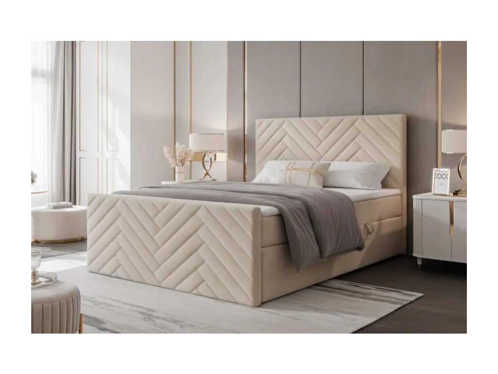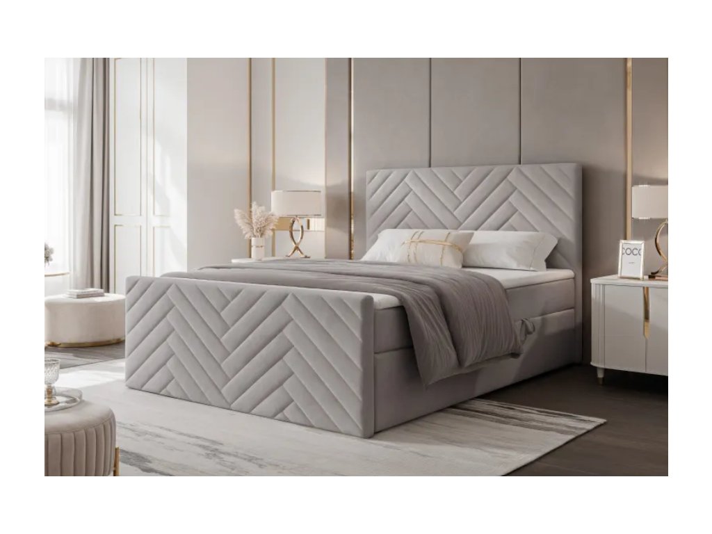 Jeho výrazné, vysoké čelo postele s ozdobným prešívaním púta pozornosť a dodáva prestížny nádych každému interiéru, pričom dokonale dopĺňa očarujúce aj moderné interiéry. Ozdobné prešívanie zdobí aj prednú časť postele a vytvára tak ucelený a elegantný celok.