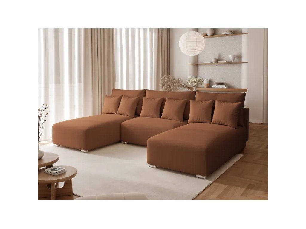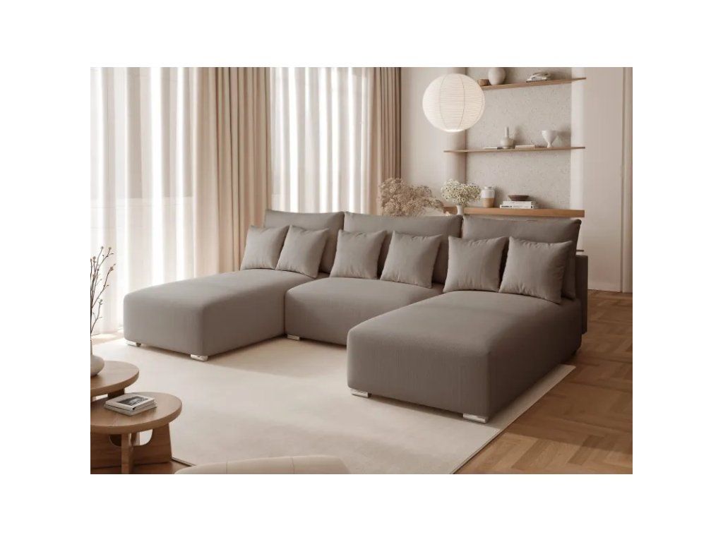 Rohová pohovka MADALYN U kombinuje modernosť, pohodlie a funkčnosť. Jej zaoblený tvar a odolná konštrukcia na borovicovom ráme poskytujú bezkonkurenčnú stabilitu a pohodlie. Vďaka vinutým pružinám v sedadle a vysoko elastickej pene je rohová pohovka mimoriadne pohodlná, či už relaxujete alebo spíte.