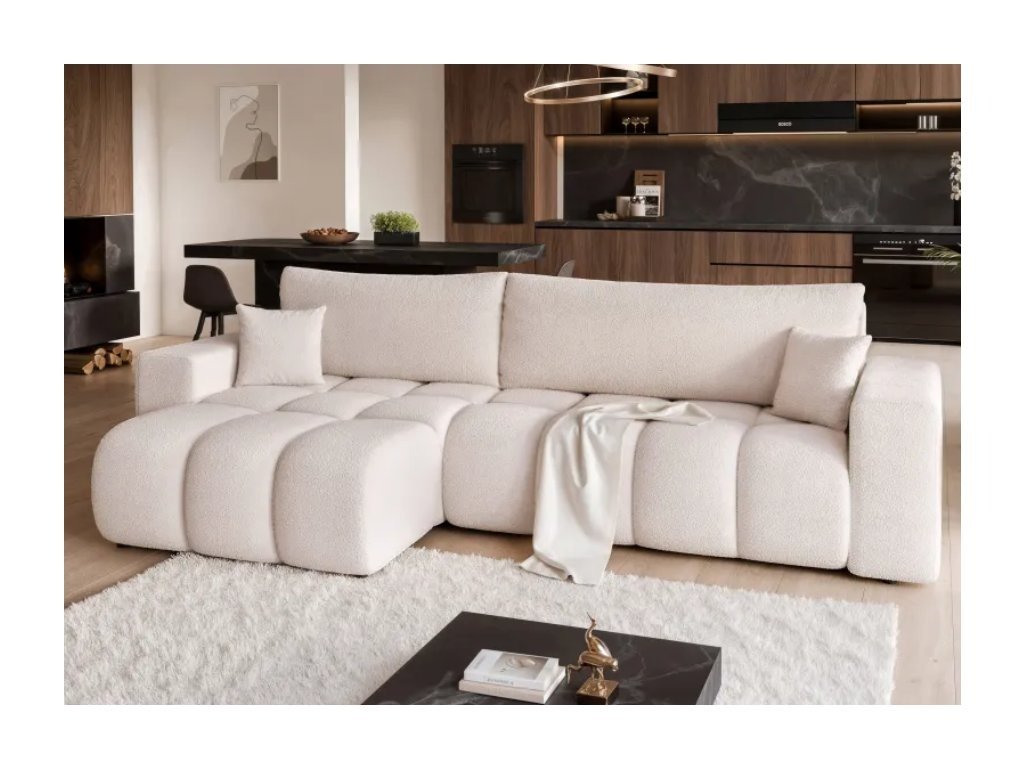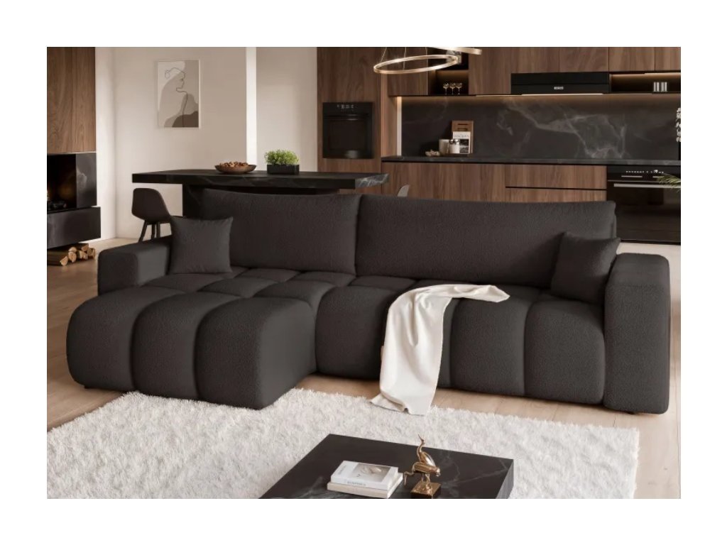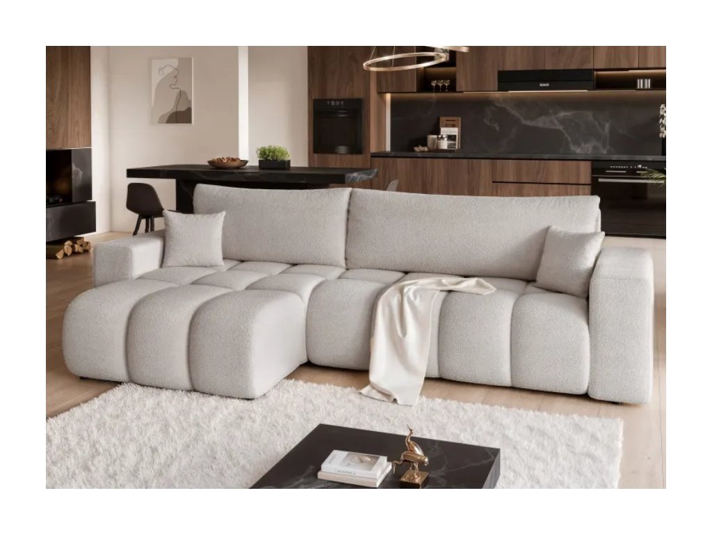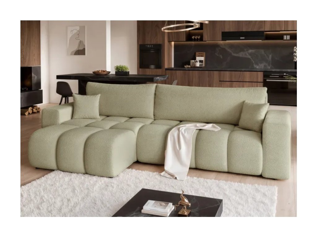 Čalúnená rohová pohovka OGEN je moderný kus nábytku s funkciou spania a úložným priestorom na posteľnú bielizeň, ktorý kombinuje štýl, pohodlie a praktickosť pri každodennom používaní.