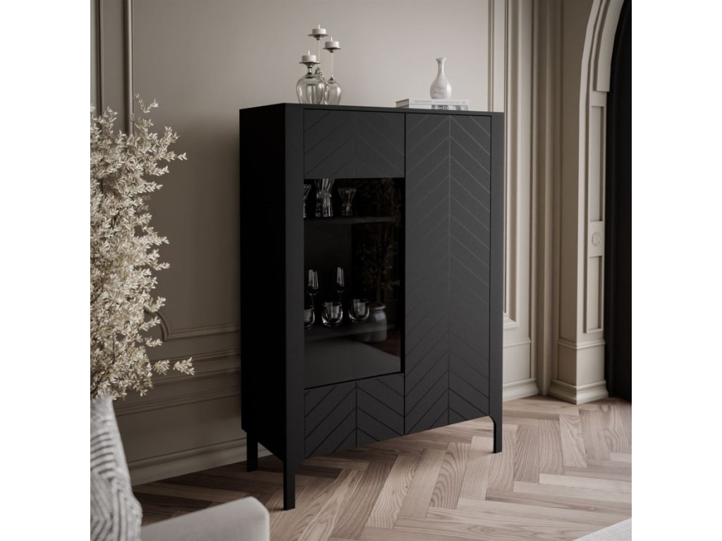 Bezúchytkový otvárací systém push-to-open dodáva nábytku moderný a minimalistický charakter, zatiaľ čo pánty s tlmeným zatváraním zabezpečujú pohodlné každodenné používanie. Vďaka starostlivo vybraným materiálom a nadčasovému dizajnu bude vitrína perfektným doplnkom obývačky, jedálne alebo kancelárie a zdôrazní štýl a harmóniu interiéru.