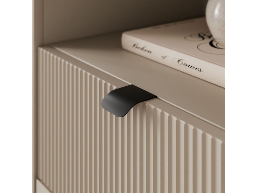 Polica NICOLA je praktický a elegantný kus nábytku, ktorý dokonale ladí so štýlom kolekcie. Vďaka trom priestranným zásuvkám poskytuje dostatok miesta na uloženie drobností, ktoré chcete mať vždy po ruke. Otvorená polica je ideálnym miestom na vystavenie dekorácií, kníh alebo iných predmetov, ktoré chcete vo svojom interiéri zvýrazniť. Uzamykateľná skrinka s policou vám navyše umožňuje ukladať predmety, ktoré vyžadujú väčšiu diskrétnosť, ako sú dokumenty alebo iné osobné doplnky. Celok kombinuje funkčnosť s elegantným vzhľadom a decentné drážkované predné strany a kontrastná povrchová úprava vrchných častí robia z police nielen praktický, ale aj štýlový prvok vášho interiéru.
