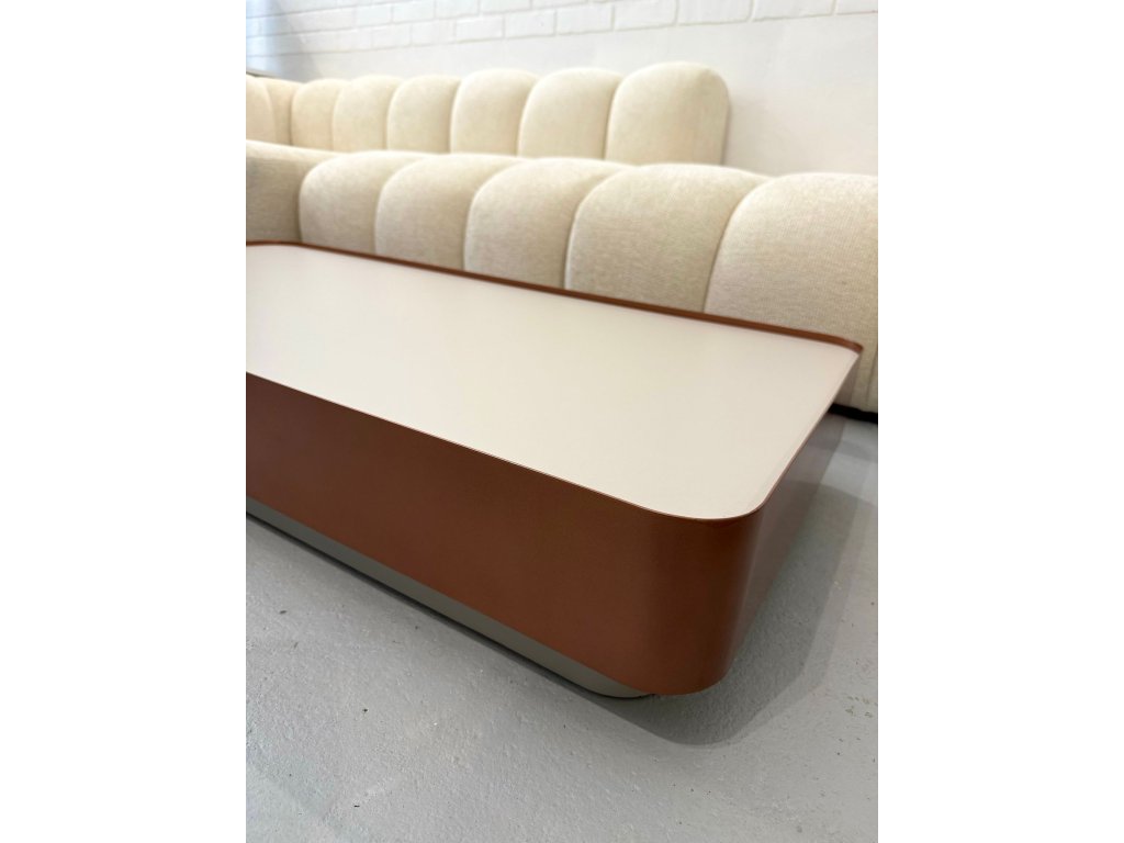 Dizajnový konferenčný stolík s nízkym profilom, ktorý sa perfektne hodí k minimalizmu interiérov.