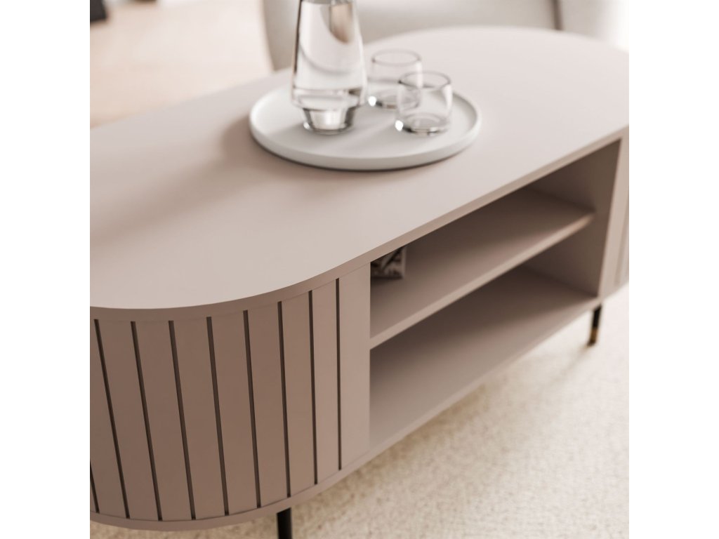 Ich jedinečné tvary, založené na mäkkých, valcovitých formách, dokonale zapadajú do súčasných trendov a zároveň evokujú spomienky na klasický dizajn z minulých desaťročí. Navyše, jemné drážkované povrchové úpravy na predných častiach nábytku im dodávajú elegantnú textúru, ktorá do každej miestnosti vnáša jedinečnú atmosféru – modernú aj nostalgickú.