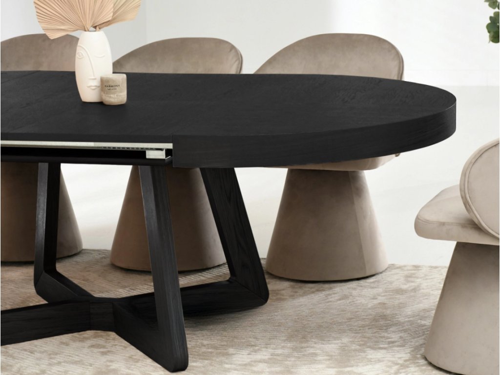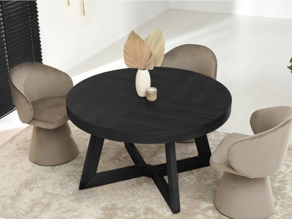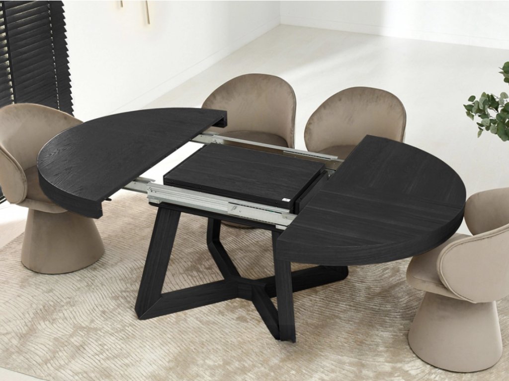 Moderný okrúhly rozkladací stôl OLGA čierny