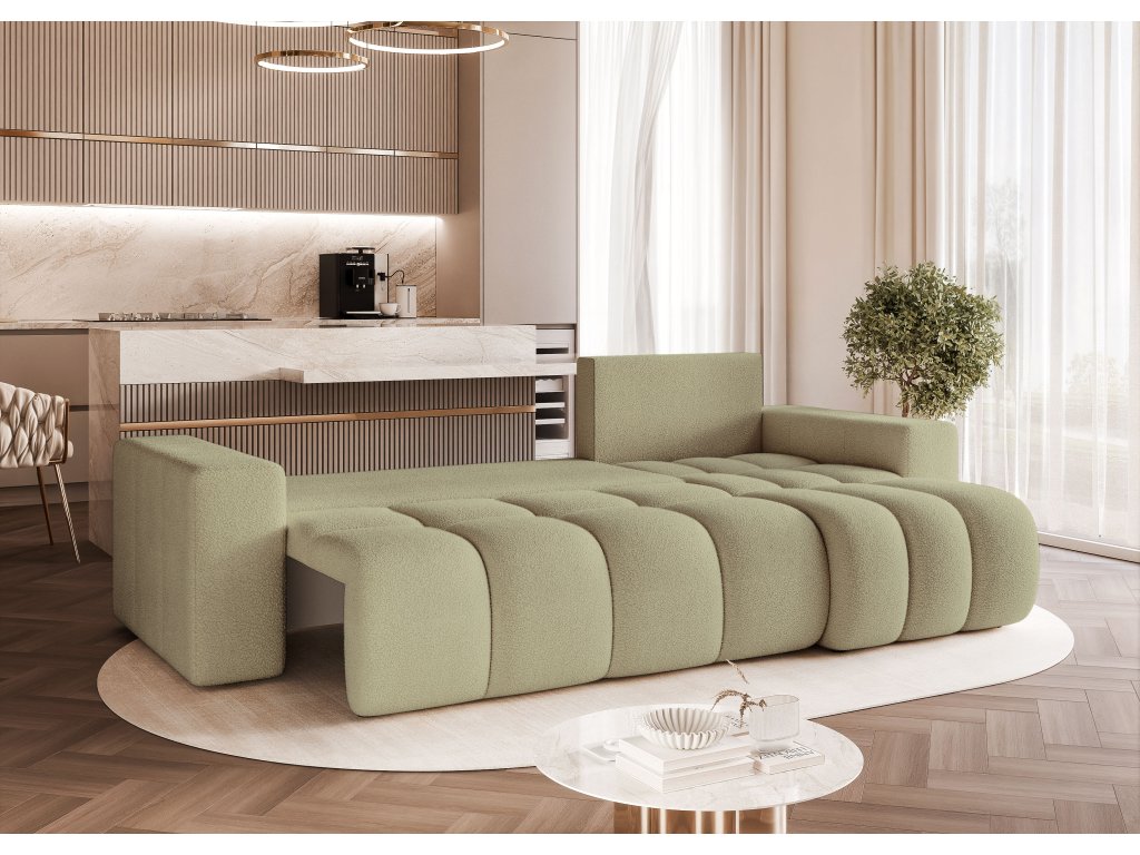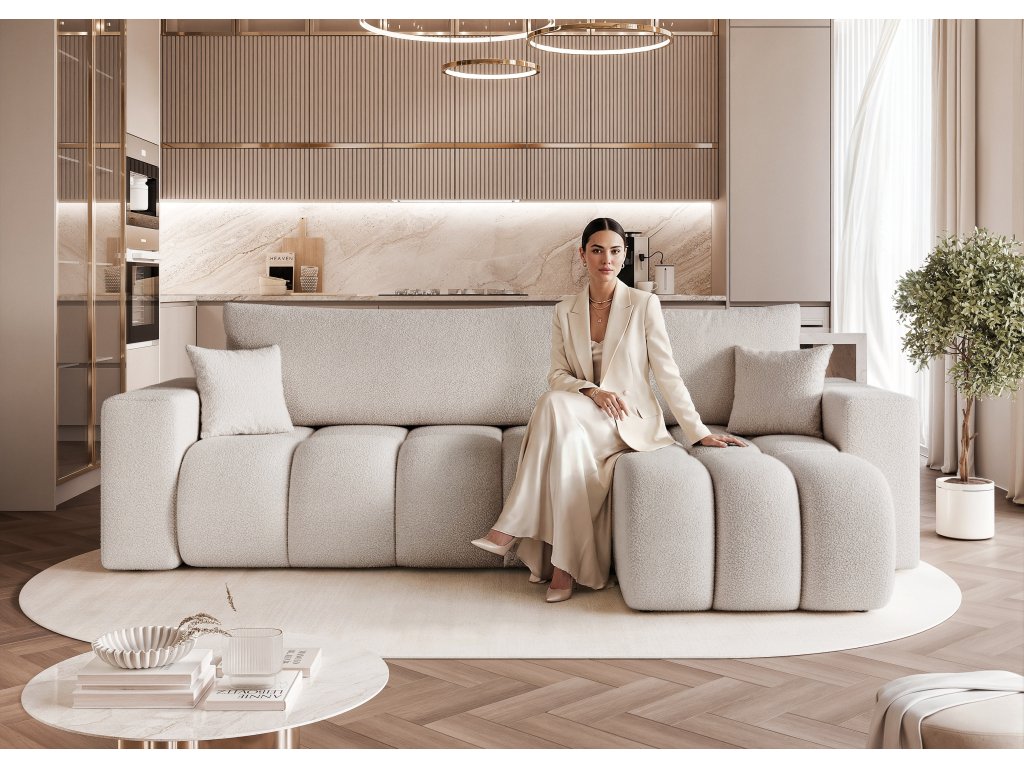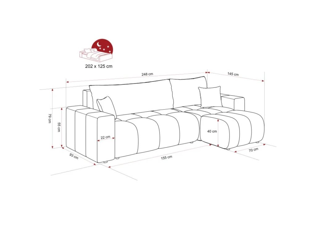 Praktickosť na prvom mieste: Potrebujete rýchlo ubytovať návštevu alebo si dopriať kráľovský oddych? Funkcia spania premení pohovku na pohodlné lôžko v priebehu pár sekúnd. Navyše, priestranný úložný box hravo schová všetku posteľnú bielizeň a udrží váš domov uprataný.