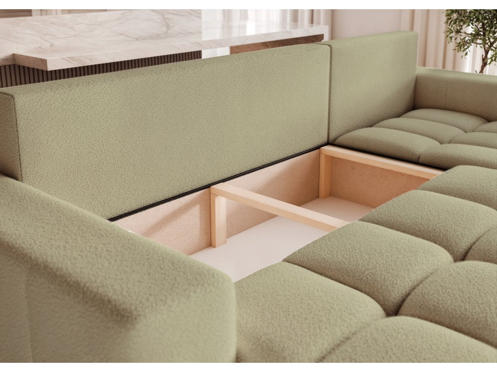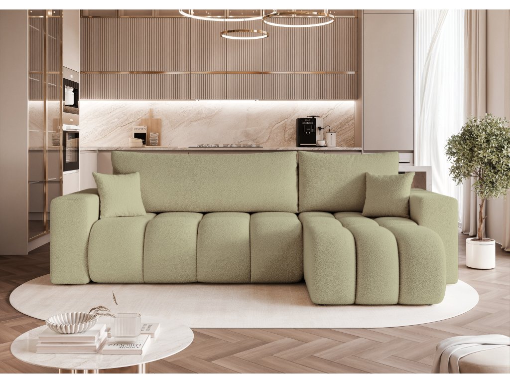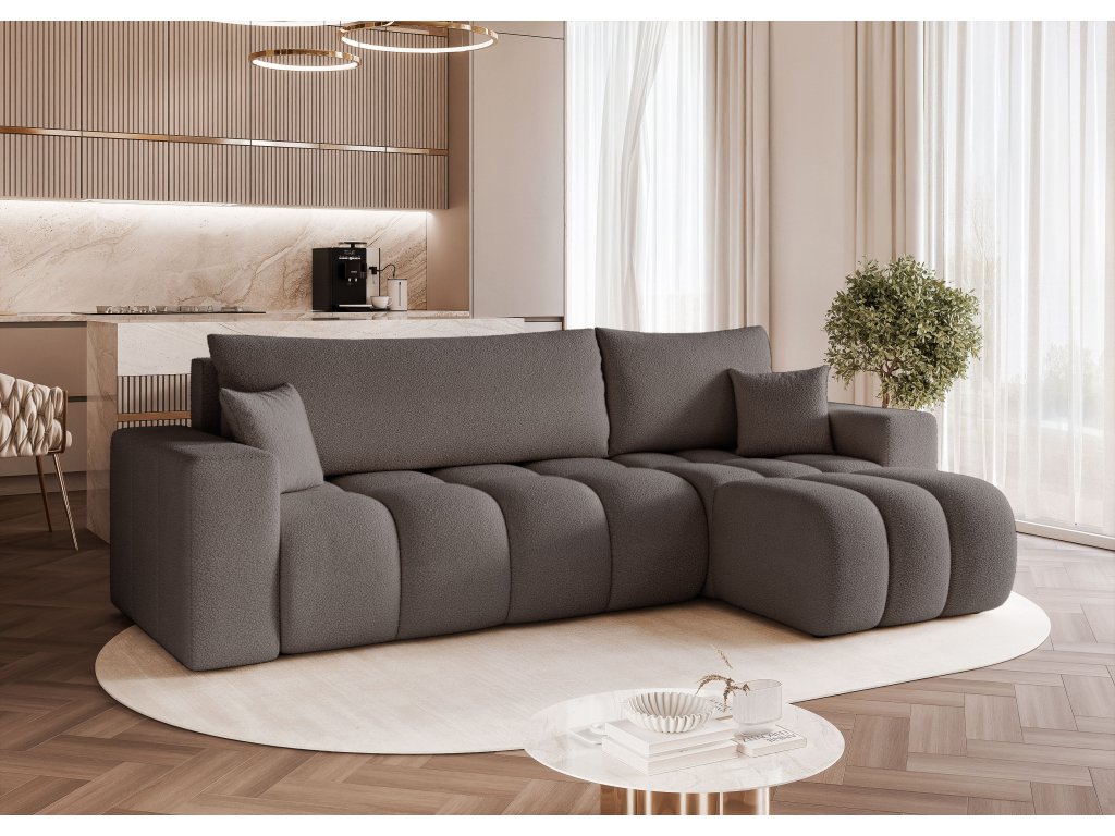 Čalúnená rohová pohovka OGEN je moderný kus nábytku s funkciou spania a úložným priestorom na posteľnú bielizeň, ktorý kombinuje štýl, pohodlie a praktickosť pri každodennom používaní.