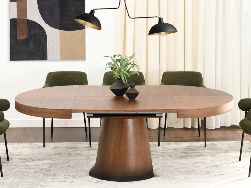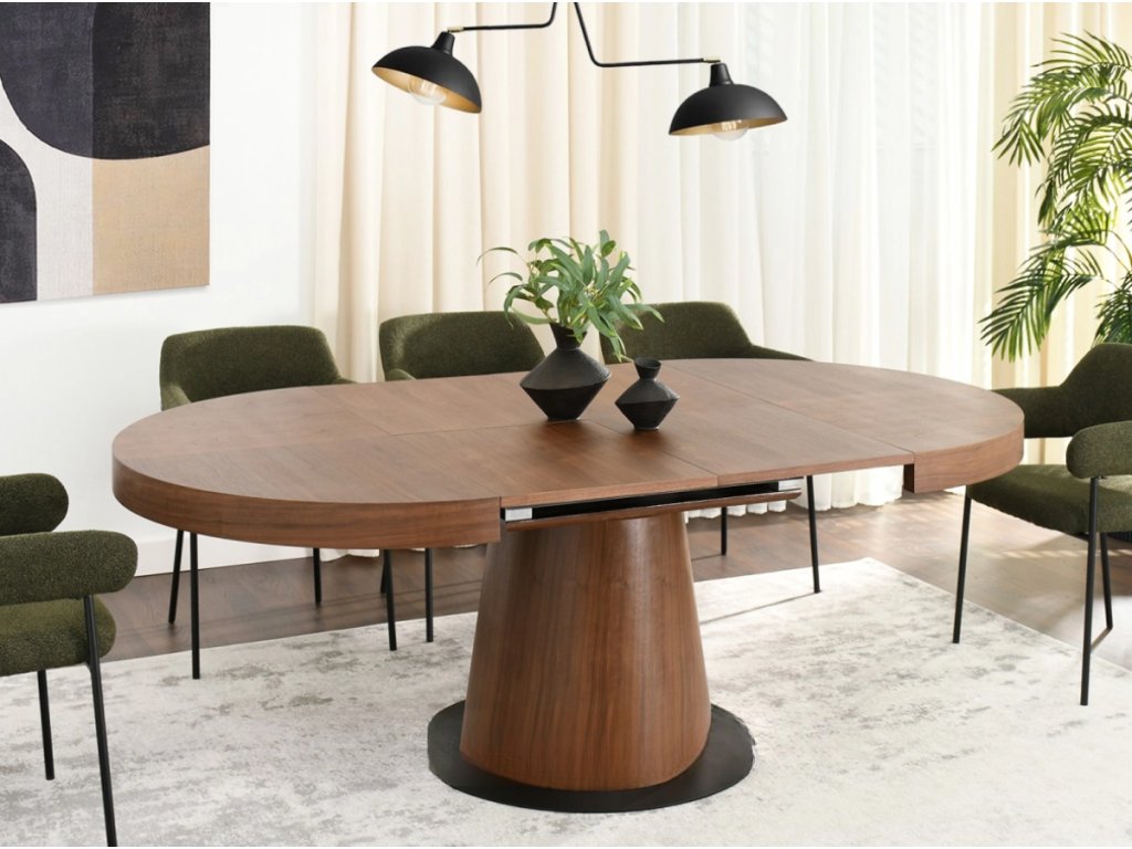 Okrúhly stôl ADEN je perfektnou voľbou do priestrannej obývačky alebo modernej jedálne , kde záleží na elegancii a funkčnosti.