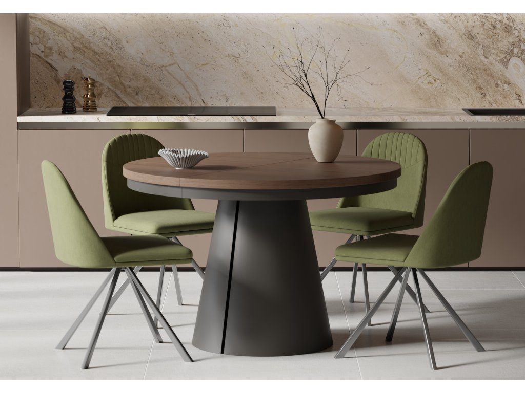 Tvar dosky stola: Okrúhly; Kónická základňa: