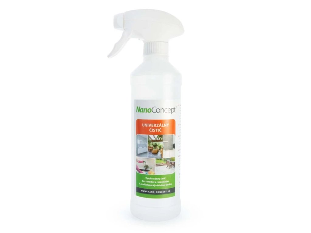 Univerzálny Čistič NanoConcept® je vysoko účinný čistič pripravený rovno k použitiu. Inovatívny postup mikrodelenia umožňuje účinné čistenie bez poškodenia povrchovými aktívnymi látkami (tenzidy), rozpúšťadlami, enzýmami a bieliacimi prípravkami.