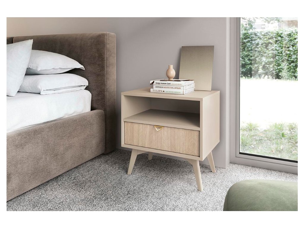 Nočný stolík Davina predstavuje harmonické spojenie štýlu a funkcie. Elegantný dizajn doplnený o praktické úložné priestory robí z tohto stolíka perfektný doplnok ku každej posteli.