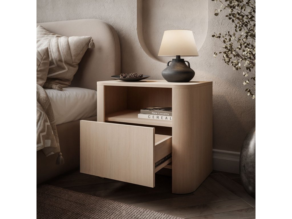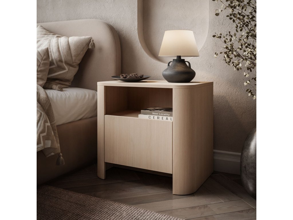 Moderne ladený nočný stolík dokonale zapadne k posteli alebo ďalšiemu nábytku (napr. komoda, vitrína), čím vytvorí harmonickú zostavu.