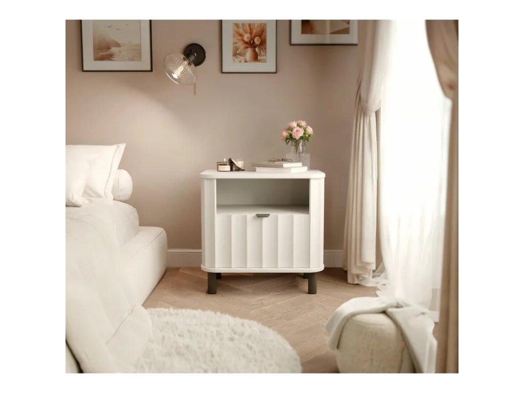 Nočný stolík ONUR je dostupný v dvoch univerzálnych farbách: hlinenej šedej a bielej , vďaka čomu sa dá ľahko zladiť s rôznymi štýlmi interiéru a farbami spální.