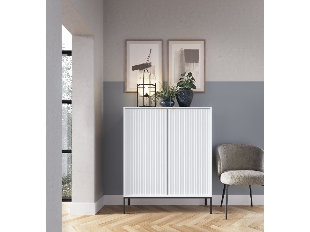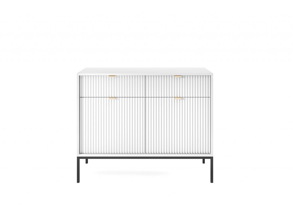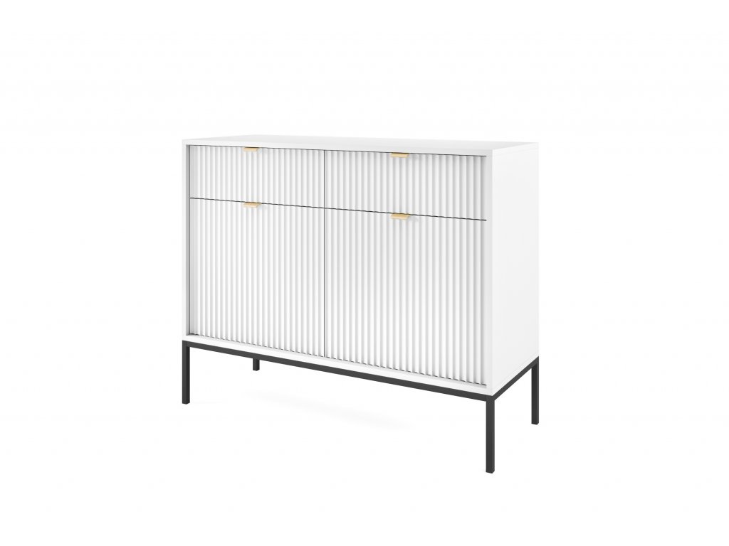 Kovový podstavec dodáva konštrukcii ľahkosť a celok dopĺňajú ozdobné zlaté úchytky .