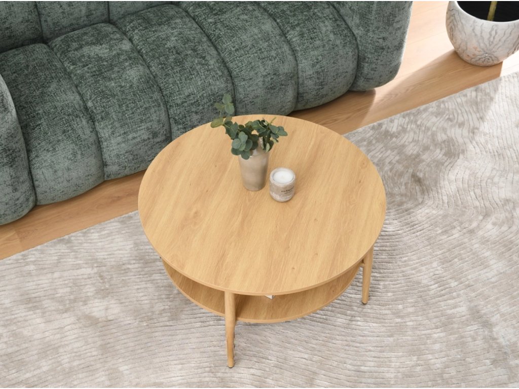 Jeho okrúhla doska s priemerom 80 cm ponúka pohodlný priestor na všetko, čo chcete mať poruke – od kávy a občerstvenia až po dekorácie a knihy. Vyzerá perfektne vedľa pohovky alebo rohovej pohovky a vytvára ucelený a štýlový relaxačný priestor. Medzi kľúčové vlastnosti patria: