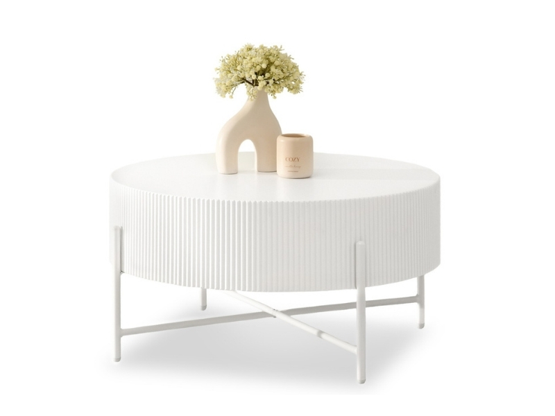 Štýlový okrúhly konferenčný stolík bude elegantným doplnkom interiéru, ktorý spája funkčnosť s nadčasovou estetikou. Okrúhly tvar stola podporuje voľnú komunikáciu a ryhovaný povrch dodáva stolu charakter a dodáva miestnosti jemný umelecký akcent. Stolík Hadlee sa vyrába v odtieni biely mat. Priemer stolíka je 80 cm.