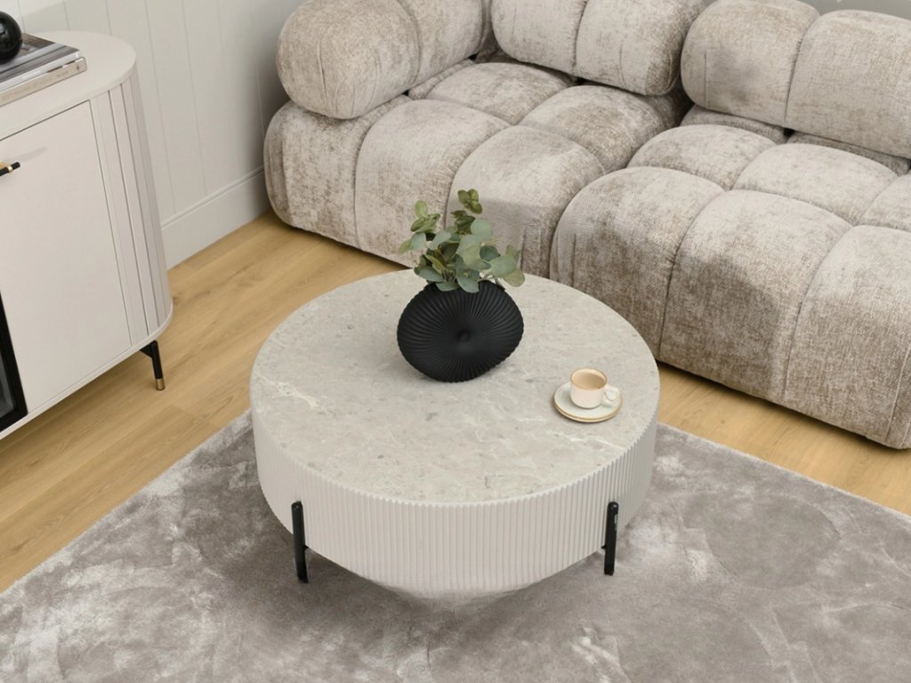 Okrúhly konferenčný stolík HADLEE sivý mramor + čierne nohy