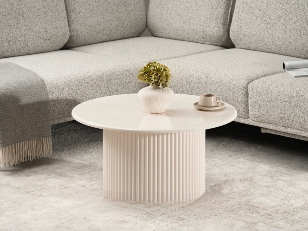 Výberom okrúhleho konferenčného stolíka KARLA investujete do kombinácie odolnosti, estetiky a funkčnosti . Jeho drážkovaný, krémovo biely lesk a robustné materiály zaručujú roky spokojnosti. Tento kus nábytku nielenže zaujme svojím vzhľadom, ale spĺňa aj praktické potreby každého interiéru. Vytvorte si jedinečný priestor, kde záleží na každom detaile, výberom KARLA ako ústredného prvku vášho dizajnu.
